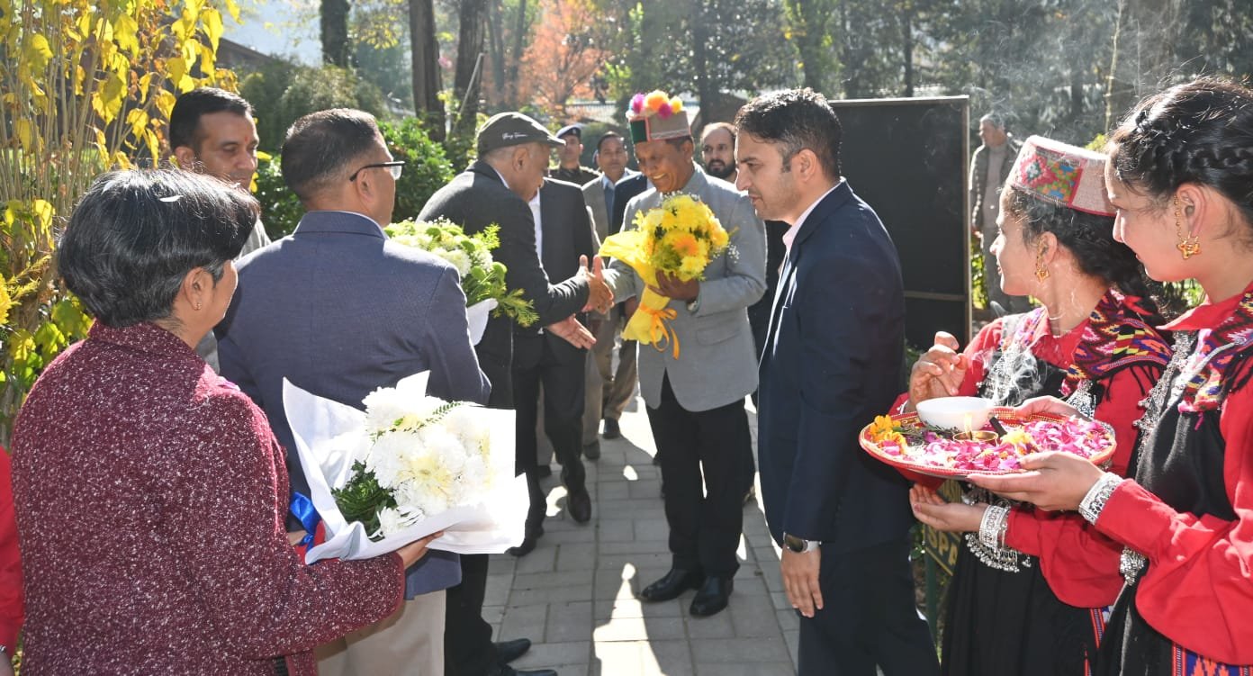 डिजिटल भूमि प्रशासन सम्मेलन में पहुंचे राजस्व मंत्री जगत सिंह नेगी का स्वागत करते अधिकारी