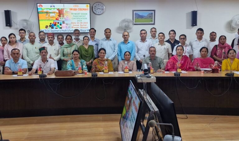 बिलासपुर। जिला मुख्यालय बचत भवन में शनिवार को स्वास्थ्य एवं परिवार कल्याण विभाग, बिलासपुर द्वारा टीबी मुक्त पंचायतों के प्रतिनिधियों के सम्मान में विशेष कार्यक्रम आयोजित किया गया। इस कार्यक्रम की अध्यक्षता उपायुक्त राहुल कुमार ने की। जिला प्रशासन की ओर से इस वर्ष टीबी मुक्त घोषित कुल 29 पंचायतों के प्रतिनिधियों को राष्ट्रपिता महात्मा गांधी की प्रतिमा और प्रशस्ति पत्र देकर सम्मानित किया गया।