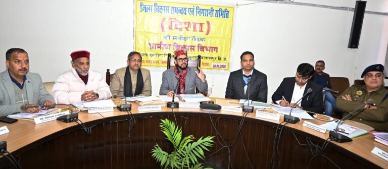 जिला विकास समन्वय एवं निगरानी समिति (दिशा) की बैठक आज बचत भवन, बिलासपुर में आयोजित की गई। बैठक की अध्यक्षता सांसद (लोकसभा) अनुराग सिंह ठाकुर ने की। बैठक में केंद्र सरकार द्वारा विभिन्न विभागों के माध्यम से संचालित विकासात्मक एवं जनकल्याणकारी योजनाओं की प्रगति, उपलब्धियों तथा कार्यान्वयन की विस्तृत समीक्षा की गई। इस अवसर पर विधायक रणधीर शर्मा, जीत राम कटवाल एवं त्रिलोक जम्वाल भी उपस्थित रहे।