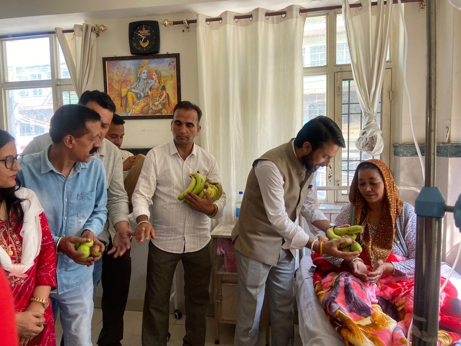 रामपुर के खनेरी अस्पताल में फल बांटते हुए भाजपा नेता कौल सिंह नेगी नेता व अन्य(सोशल मीडिया)