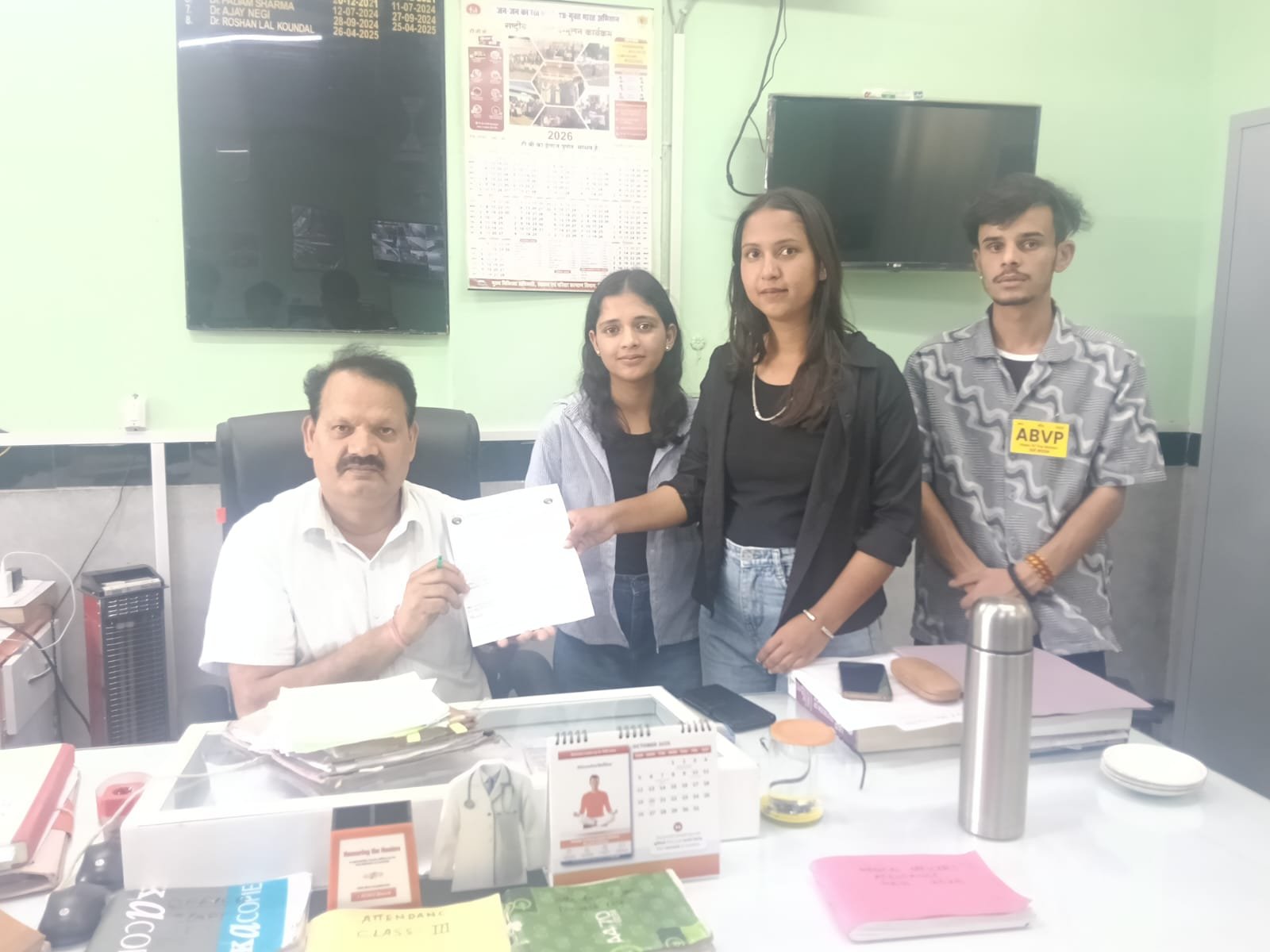 अखिल भारतीय विद्यार्थी परिषद (ABVP) संगठनात्मक जिला रामपुर के कार्यकर्ताओं ने महात्मा गांधी चिकित्सा सेवा परिसर स्थित नर्सिंग प्रशिक्षण संस्थान की प्रशिक्षु छात्राओं की गंभीर समस्याओं को लेकर मुख्य चिकित्सा अधिकारी को ज्ञापन सौंपा।