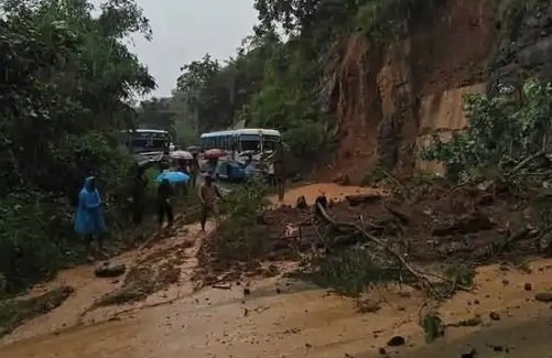 हमीरपुर जिले के लठियाणी में भारी भूस्खलन के चलते बंद पड़ी सड़क। स्रोत : सोशल मीडिया