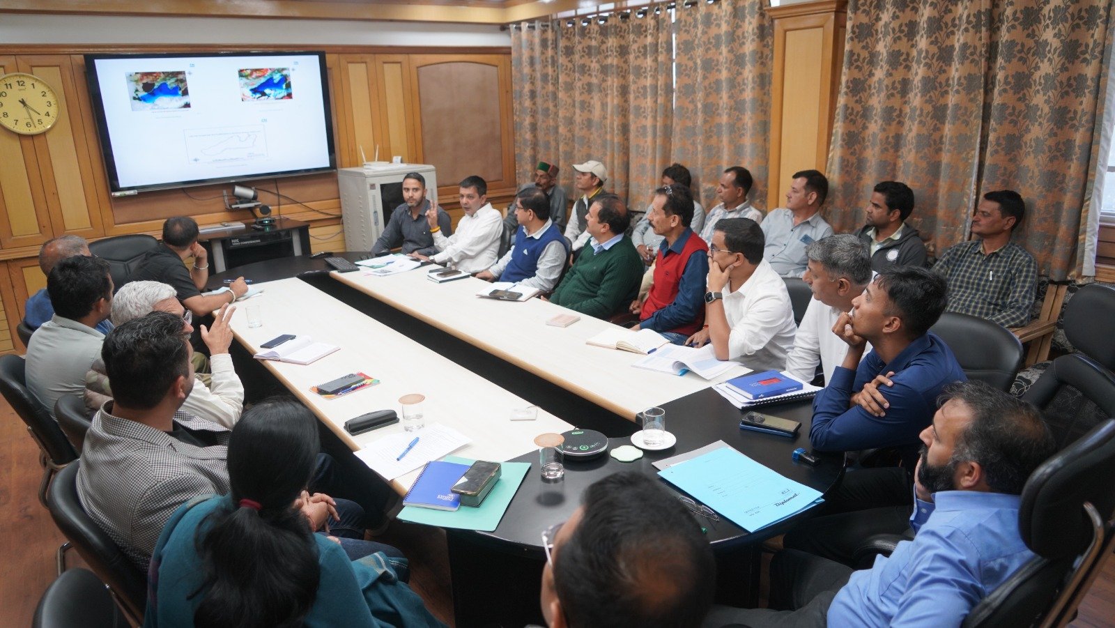 किन्नौर। उपायुक्त किन्नौर डॉ. अमित कुमार शर्मा ने आज जिला के काशंग कंडा और सांगला कंडा में बनी कृत्रिम झीलों से उत्पन्न खतरे को लेकर एक महत्वपूर्ण आपदा प्रबंधन बैठक की अध्यक्षता की। इस बैठक का उद्देश्य इन झीलों के फटने की स्थिति में मानव जीवन और संपत्ति की सुरक्षा सुनिश्चित करना था।उपायुक्त ने बताया कि इन कृत्रिम झीलों पर गत वर्ष एक विशेषज्ञ शोध दल द्वारा अध्ययन करवाया गया था, जिसकी रिपोर्ट में झीलों से संभावित नुकसान और उससे निपटने के उपाय बताए गए हैं।