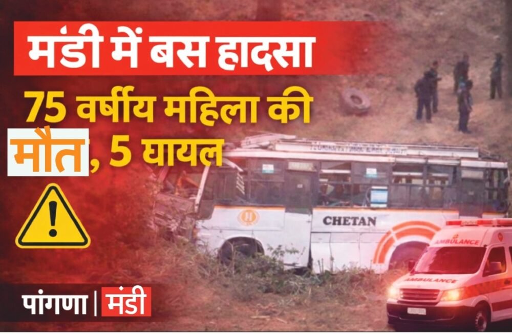 हिमाचल प्रदेश के मंडी जिले में सोमवार सुबह एक सड़क हादसा सामने आया। पांगणा क्षेत्र के तहत पुलिस चौकी निहरी के तहत आने वाले चरखड़ी गांव के पास एक निजी बस दुर्घटनाग्रस्त हो गई। इस हादसे में 75 वर्षीय बुजुर्ग महिला की मौत हो गई, जबकि पांच यात्री घायल बताए जा रहे हैं। जानकारी के अनुसार, हादसे के समय बस में कुल पांच यात्री सवार थे। इनमें से दो यात्रियों को गंभीर चोटें, जबकि तीन को मामूली चोटें आई हैं। घायलों में एक बच्चा भी शामिल बताया जा रहा है। हादसे के बाद सभी घायलों को उपचार के लिए नजदीकी स्वास्थ्य केंद्र पहुंचाया गया। गंभीर रूप से घायल बुजुर्ग महिला ने उपचार के दौरान दम तोड़ दिया। पुलिस जांच कर रही है और हादसे के वास्तविक कारणों का पता लगाया जा रहा है।