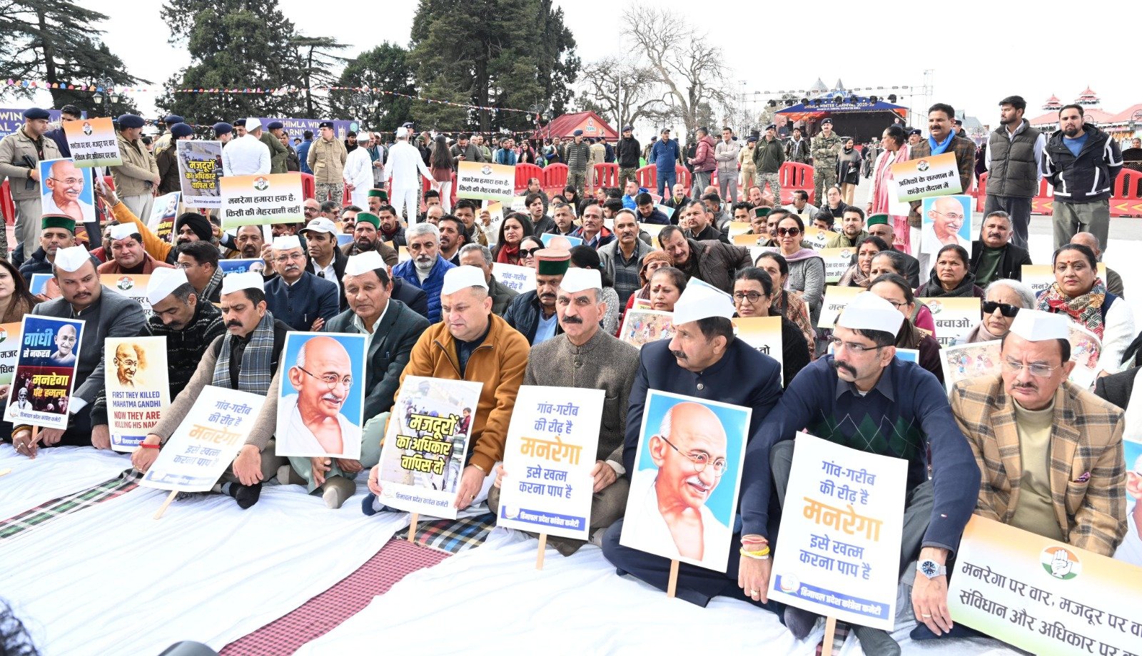 मुख्यमंत्री ठाकुर सुखविन्द्र सिंह सुक्खू ने शिमला के रिज मैदान में महात्मा गांधी की प्रतिमा के समीप मंत्रिमंडल सहयोगियों के साथ धरना देकर केंद्र सरकार के मनरेगा को समाप्त करने के फैसले का विरोध किया। मुख्यमंत्री ने इस निर्णय को जनविरोधी बताते हुए कहा कि यह ग्रामीण क्षेत्रों के गरीबों के अधिकारों पर सीधा प्रहार है। मुख्यमंत्री ने कहा कि मनरेगा योजना कांग्रेस सरकार की देन है, जिसकी परिकल्पना पूर्व प्रधानमंत्री डॉ. मनमोहन सिंह और कांग्रेस नेता सोनिया गांधी ने की थी। यह योजना ग्रामीण क्षेत्रों में रोजगार सृजन के साथ-साथ पंचायत स्तर पर विकास कार्यों का आधार रही है।