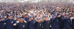 बिलासपुर में राजकीय वरिष्ठ माध्यमिक पाठशाला (छात्र) लुहणु मैदान में एंटी चिट्‌टा रैली में शामिल जन समूह को शपथ दिलवाते सीएम सुक्खू