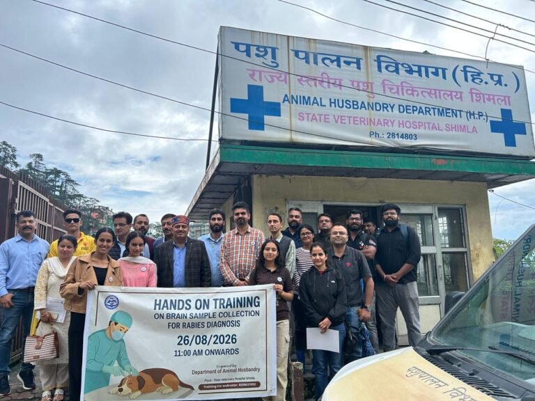 शिमला। राज्य पशु चिकित्सालय, शिमला में आज पशुओं में रैबीज़ निदान हेतु ब्रेन सैंपल संग्रहण पर एक दिवसीय हैंड्स-ऑन प्रशिक्षण कार्यक्रम आयोजित किया गया। इस कार्यक्रम में हिमाचल प्रदेश के विभिन्न जिलों से आए 10 से अधिक पशु चिकित्सकों ने भाग लिया।