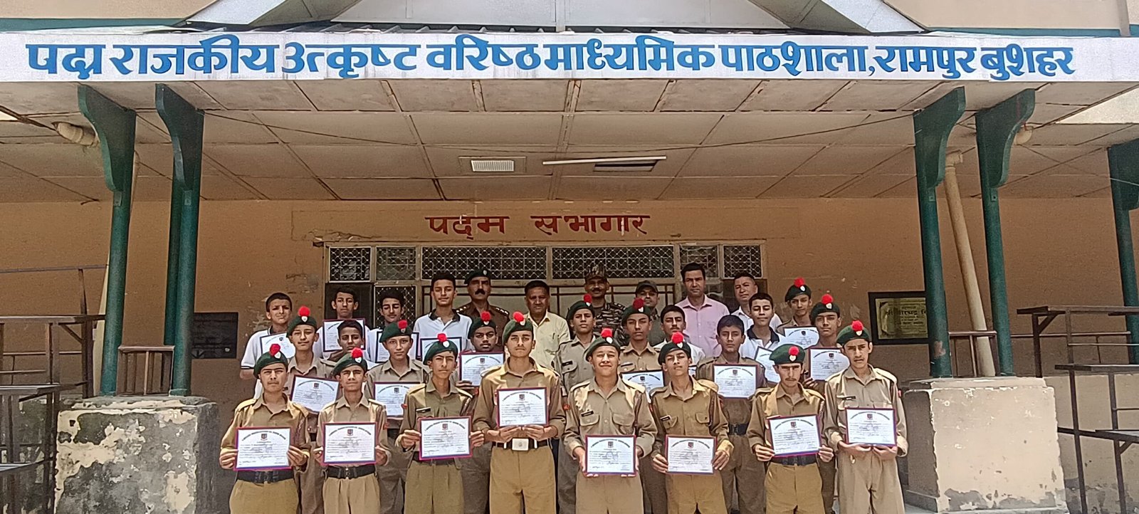 रामपुर बुशहर। राजकीय पदम वरिष्ठ माध्यमिक पाठशाला रामपुर के 27 एनसीसी कैडेट्स को उनके उत्कृष्ट प्रदर्शन के लिए विद्यालय प्रधानाचार्य रत्न चंद गुप्ता द्वारा सम्मानित किया गया। एनसीसी अधिकारी तिलक राज शर्मा ने जानकारी देते हुए बताया कि राजकीय महाविद्यालय सरस्वती नगर में आयोजित दस दिवसीय वार्षिक एनसीसी शिविर में इन कैडेट्स ने शानदार प्रदर्शन किया।