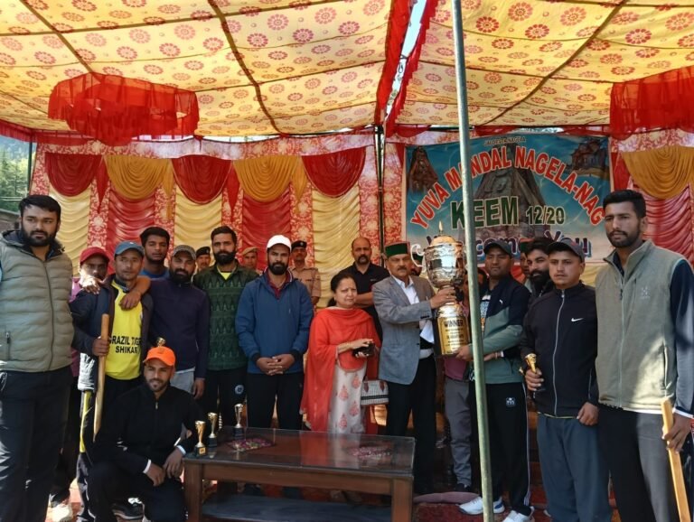 रामपुर बुशहर। उपमंडल रामपुर के 12/20 क्षेत्र के कीम में युवक मंडल द्वारा आयोजित नगेला प्रीमीयर लीग क्रिकेट प्रतियोगिता का समापन जोरदार मुकाबले के साथ हुआ। फाइनल मैच में बीटीएस जगूणी की टीम ने शानदार प्रदर्शन करते हुए खोश ब्रदर्स शाह को हराकर खिताब अपने नाम किया।