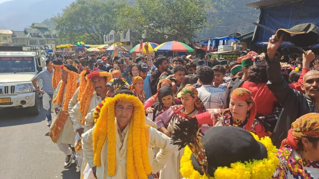 शुक्रवार को देव रथों, पारंपरिक देव वाद्ययंत्रों और ढोल-नगाड़ों की गूंज के बीच देवी-देवताओं की शोभायात्रा मुख्य बाजार से होकर गुजरी। इस दौरान देवताओं के साथ आए देवलुओं ने पारंपरिक हिमाचली लोकनृत्य ‘नाटी’ प्रस्तुत कर वातावरण को भक्तिमय और उत्सवमय बना दिया। बाजार में मौजूद लोगों ने भी श्रद्धा के साथ देवताओं का स्वागत किया और उनका आशीर्वाद प्राप्त किया।