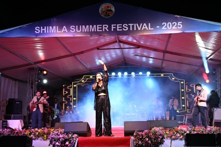 शिमला। अंतरराष्ट्रीय शिमला ग्रीष्मोत्सव की पहली संध्या पार्श्व गायिका निधि रस्तोगी के नाम रही। उन्होंने अपनी सुरीली प्रस्तुतियों से दर्शकों का मन मोह लिया। उनके साथ-साथ गजल गायक मिथिलेश लखनवी ने भी अपनी गजलों से समां बांधा। पहली संध्या में स्थानीय कलाकार प्रकाश शर्मा, शीतल, मीना बैनर्जी, सीता राम, महेंद्र शर्मा, सुरेश शर्मा और रोहिनी डोगरा ने भी अपनी प्रस्तुतियों से दर्शकों का दिल जीता। लोकलाकारों ने एक से बढ़कर एक प्रस्तुति दी।