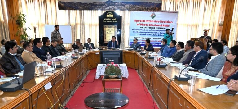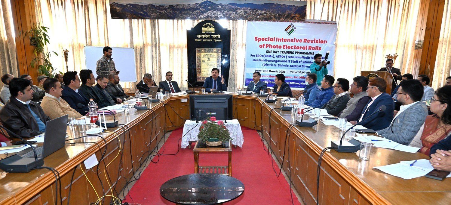 विशेष गहन पुनरीक्षण (एसआईआर) प्रक्रिया को लेकर शिमला में एक दिवसीय प्रशिक्षण एवं कार्यशाला का आयोजन किया गया। इस कार्यशाला में शिमला, सोलन और सिरमौर के निर्वाचन अधिकारियों ने भाग लिया। कार्यशाला की अध्यक्षता उपायुक्त एवं जिला निर्वाचन अधिकारी अनुपम कश्यप ने की। उन्होंने कहा कि एसआईआर एक महत्वपूर्ण प्रक्रिया है, जिसके लिए सभी स्तरों पर अधिकारियों को प्रशिक्षित किया जाना आवश्यक है। उन्होंने निर्देश दिए कि सभी अधिकारी एसआईआर के तकनीकी पहलुओं को गहराई से समझें और यह सुनिश्चित करें कि प्रक्रिया में किसी भी प्रकार की त्रुटि न हो।