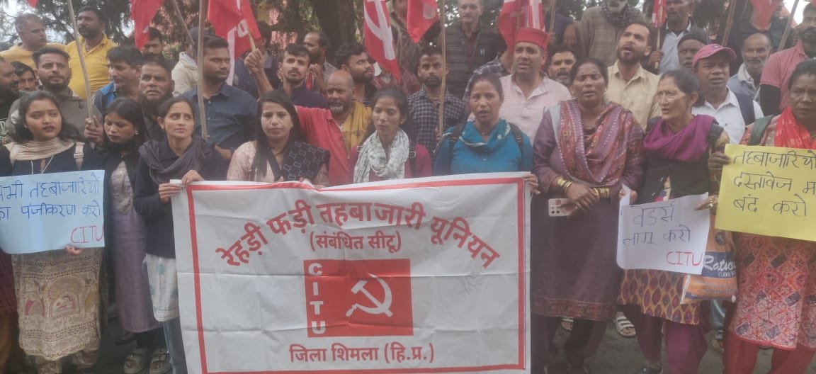 शिमला। शिमला शहर में नगर निगम द्वारा तहबाजारियों से आठ दस्तावेज मांगने के खिलाफ सीटू से जुड़े रेहड़ी फड़ी तयबजारी यूनियन ने एक दिवसीय हड़ताल की। इसके बाद उपायुक्त कार्यालय के सामने सैकड़ों लोगों ने जोरदार प्रदर्शन किया। यूनियन ने चेतावनी दी है कि यदि आधार कार्ड पर सत्यापन व पंजीकरण की शर्त को लागू नहीं किया गया और अतिरिक्त दस्तावेज़ों की मांग जारी रही तो आंदोलन और तेज होगा।